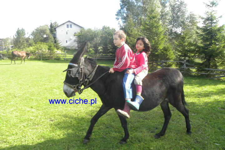 możliwość jazdy konnej, powożenie na kucykach lub osiołku, przejażdżki bryczką, zimą saniami.